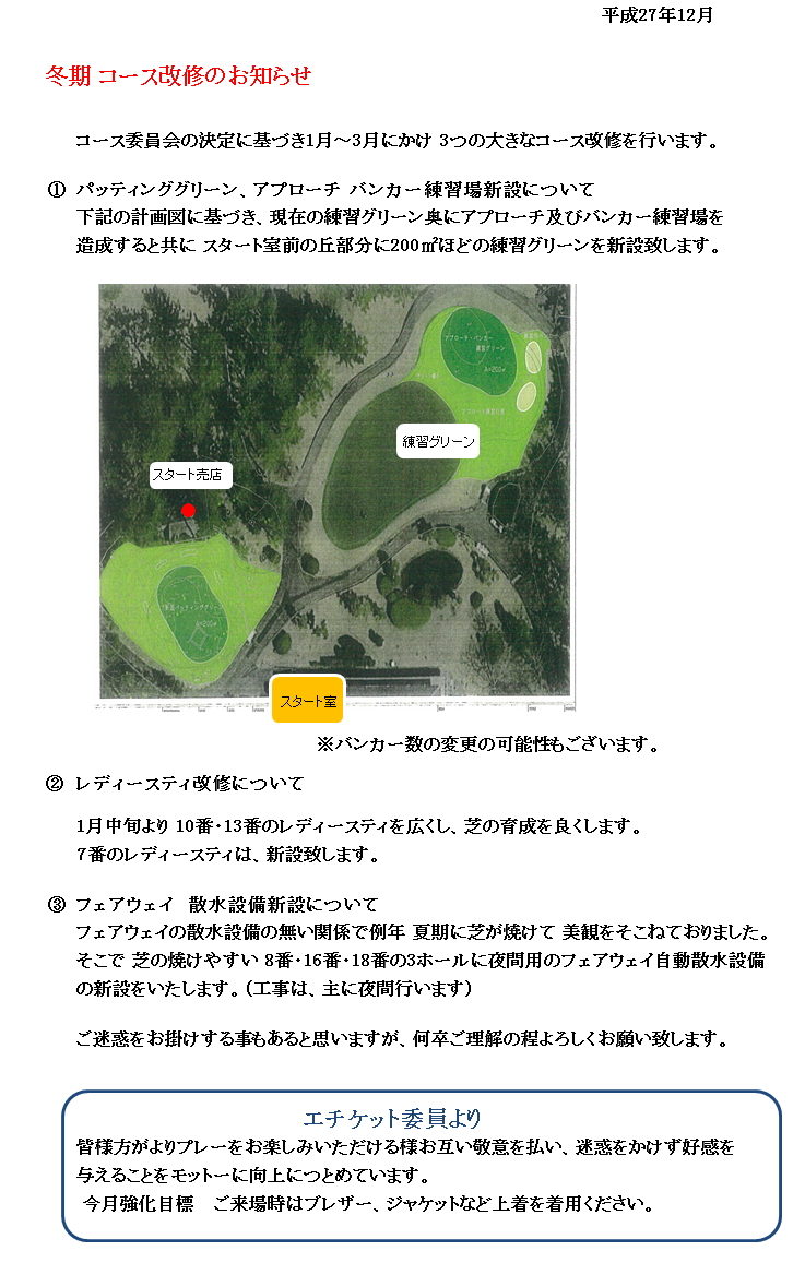 28年冬期 コース改修のご案内